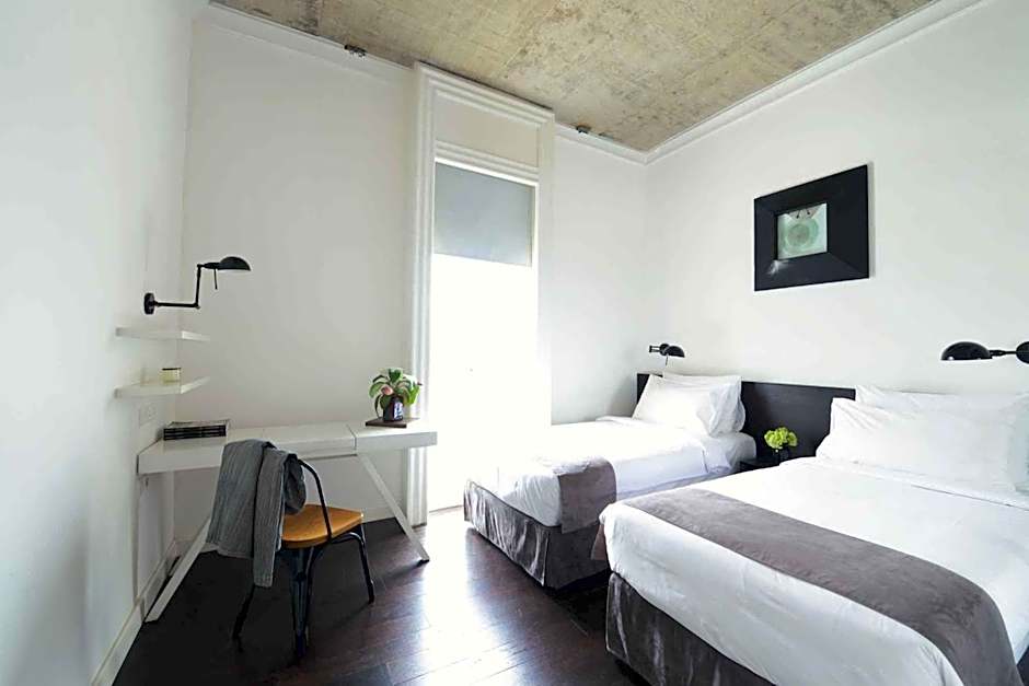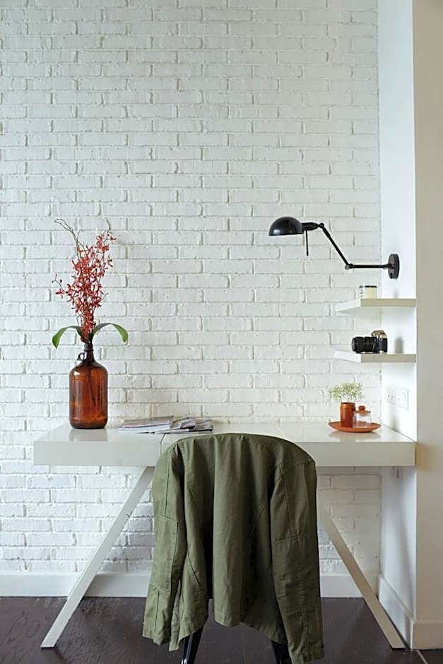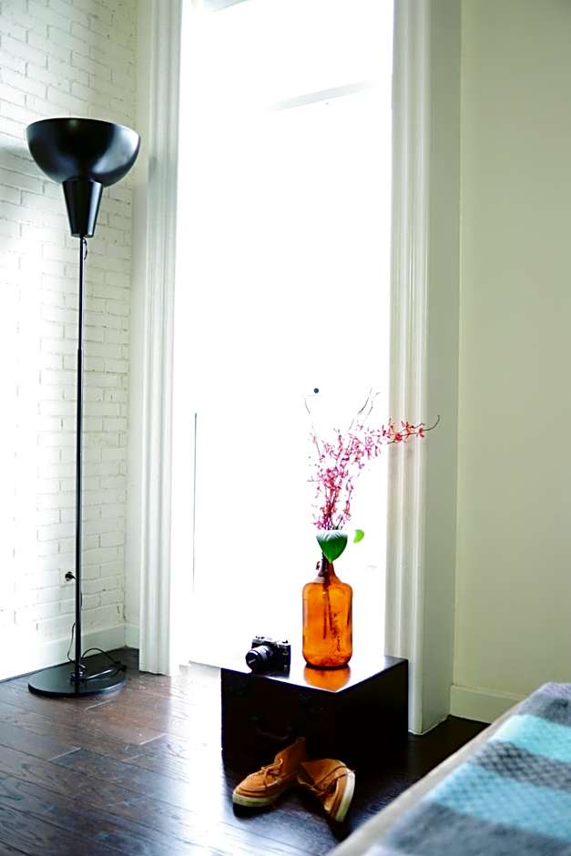 This larger and the only 2-story loft apartment enjoys a 23 ft window full of natural light. The cozy bedroom is on the upper level, with an private bathroom.